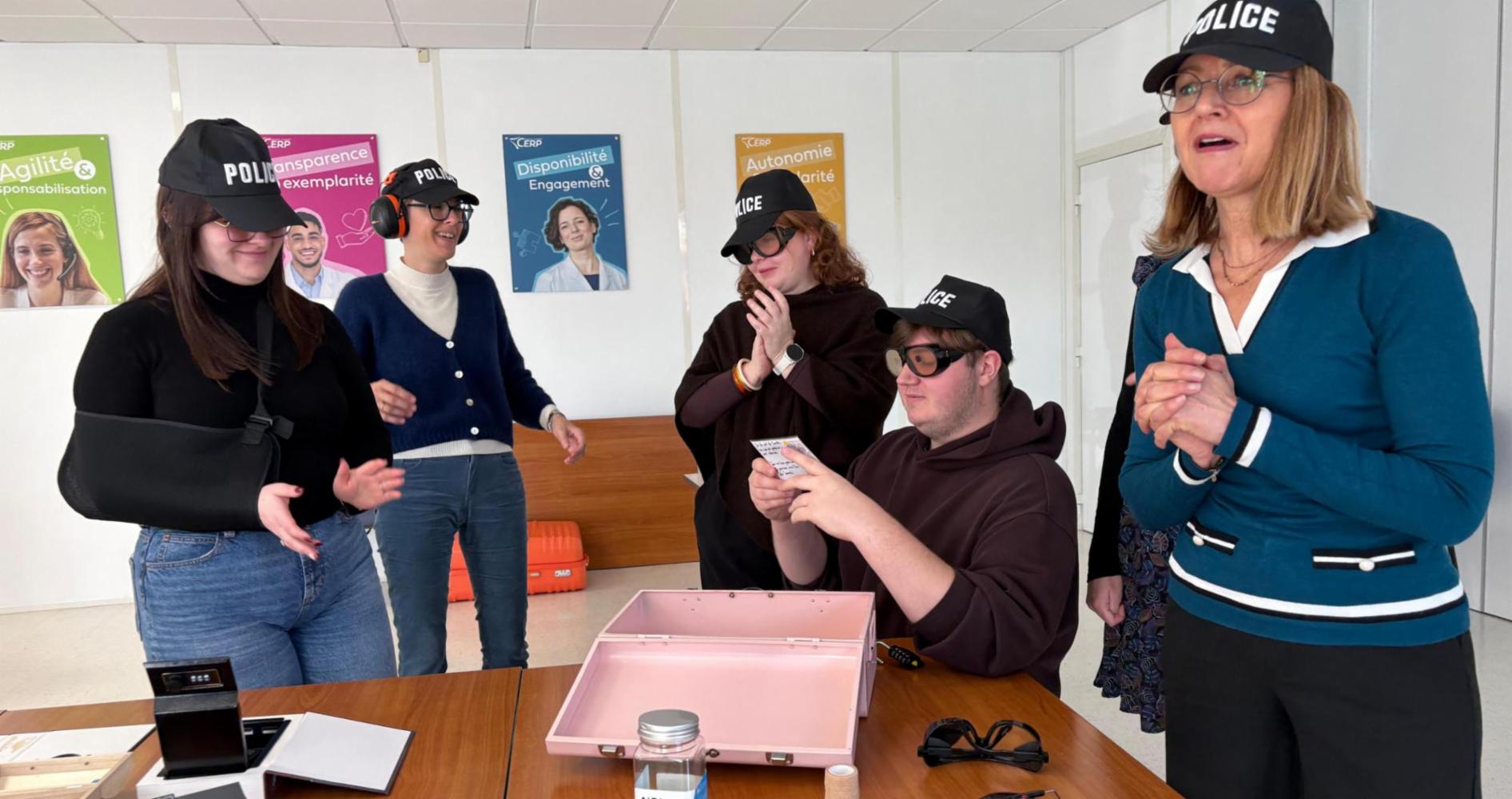 Quand la collaboration devient un défi… et que chaque geste compte. Le 19 novembre, à l’occasion de la Semaine Européenne pour l’Emploi des Personnes Handicapées, Quand la collaboration devient un défi… et que chaque geste compte. Le 19 novembre, à l’occasion de la Semaine Européenne pour l’Emploi des Personnes Handicapées, nos équipes ont relevé le défi Handy-Mystère. Un escape game immersif imaginé par l’association Performance Handicap. Une expérience qui bouscule les repères et révèle une autre façon de coopérer. Casques qui perturbent l’écoute, lunettes qui brouillent la vue, bras immobilisé, poids attachés aux pieds… Chacun a dû avancer en acceptant ces nouvelles limites. Une manière ludique et percutante de comprendre les difficultés auxquelles peuvent être confrontées certaines personnes au quotidien. La mission : retrouver Camille. Solidarité, entraide, patience et créativité ont été les véritables clés de la réussite. Les participants ont montré un bel élan d’équipe malgré les obstacles. Un moment léger, humain et marquant, pour sensibiliser à un sujet qui compte vraiment. Merci Performance Handicap !. Un escape game immersif imaginé par l’association Performance Handicap. Une expérience qui bouscule les repères et révèle une autre façon de coopérer. Casques qui perturbent l’écoute, lunettes qui brouillent la vue, bras immobilisé, poids attachés aux pieds… Chacun a dû avancer en acceptant ces nouvelles limites. Une manière ludique et percutante de comprendre les difficultés auxquelles peuvent être confrontées certaines personnes au quotidien. La mission : retrouver Camille. Solidarité, entraide, patience et créativité ont été les véritables clés de la réussite. Les participants ont montré un bel élan d’équipe malgré les obstacles. Un moment léger, humain et marquant, pour sensibiliser à un sujet qui compte vraiment. Merci Performance Handicap !