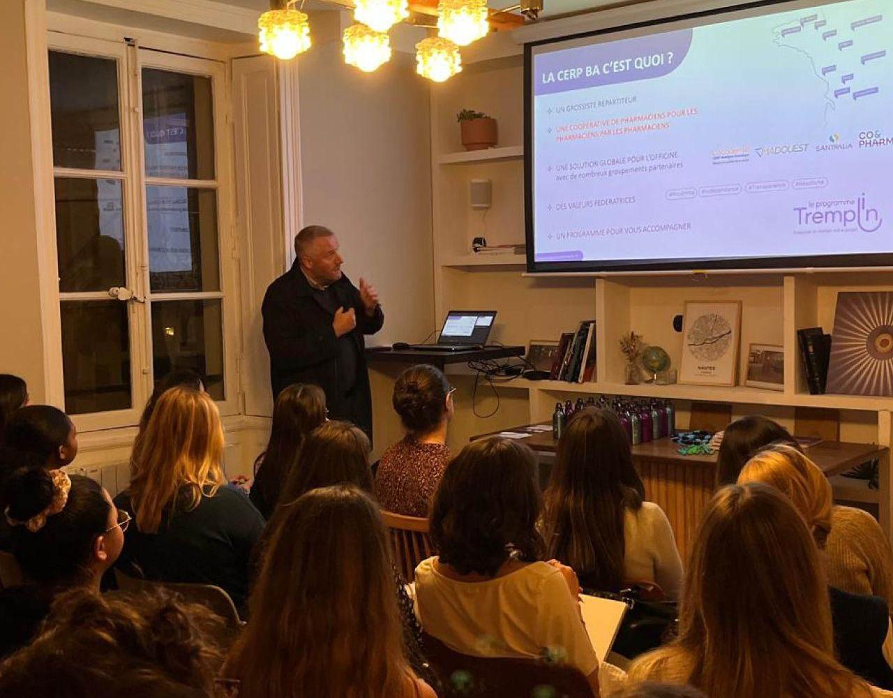 Pharmacien chez un grossiste répartiteur… ça vous parle ? Jeudi 30 octobre, l’équipe Tremplin était au forum des métiers pharmaceutiques d’Angers pour échanger avec les étudiants. L’objectif : apporter un autre regard sur le métier de pharmacien, notamment pour les 2e et 3e années en réflexion sur leur future filière. Un grand merci aux étudiants sur place pour leurs échanges et leur curiosité ! Et merci à Paul Caro et Ludwig Bacconnais pour leur investissement auprès de la nouvelle génération !